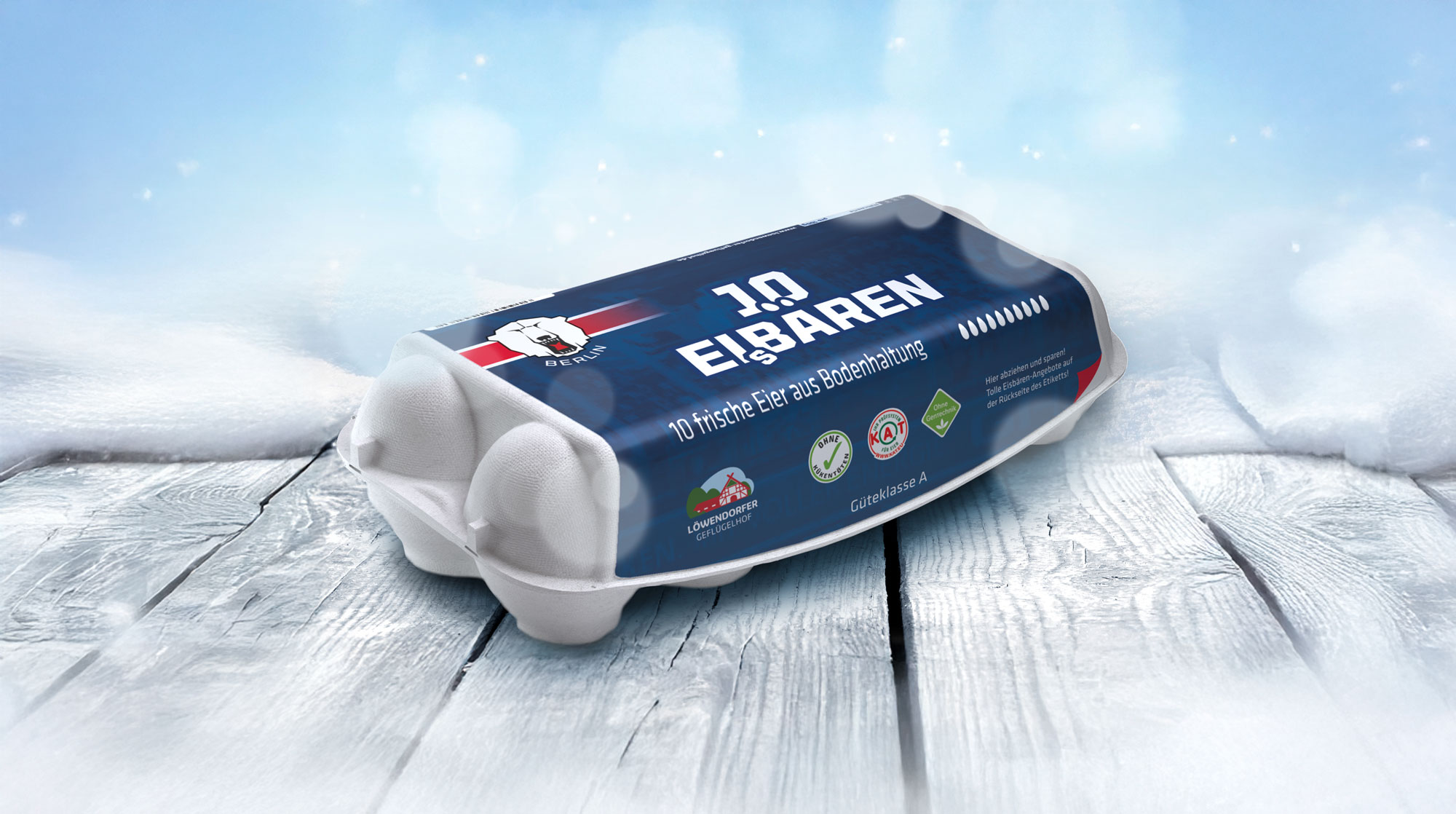 This offer comes courtesy of the exciting partnership between Löwendorfer Geflügelhof and Eisbären Berlin, and the eggs are only available regionally at Kaufland in Berlin, in the surrounding areas of Dallgow-Döberitz, at NETTO Supermarket in Eiche and EDEKA Berlin-Brandenburg. However, discussions continue with other retailers with a view to rolling out into more shopping centres.