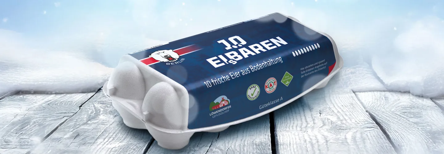 This offer comes courtesy of the exciting partnership between Löwendorfer Geflügelhof and Eisbären Berlin, and the eggs are only available regionally at Kaufland in Berlin, in the surrounding areas of Dallgow-Döberitz, at NETTO Supermarket in Eiche and EDEKA Berlin-Brandenburg. However, discussions continue with other retailers with a view to rolling out into more shopping centres.