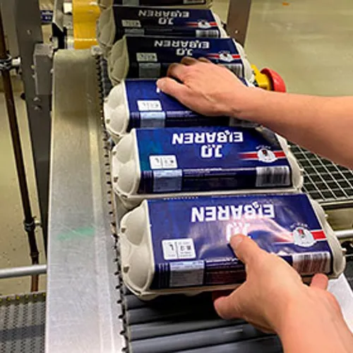 Löwendorfer Geflügelhof is a down-to-earth, nature-loving company steeped in tradition. Founded in 1932, Löwendorfer Geflügelhof was a family business run by the 3rd generation for over 90 years, until the end of 2022. Their range includes eggs from all types of farming — as well as speciality (e,g. coloured) eggs and egg products for restaurants, bakeries and other bulk consumers. More than 40 employees sort between 350,000 and 450,000 eggs per day to feed their extensive product range. Their daily quality control endeavours are the essence of their corporate culture, and they work consistently and sustainably to deliver the freshest, highest quality eggs to the supermarket.