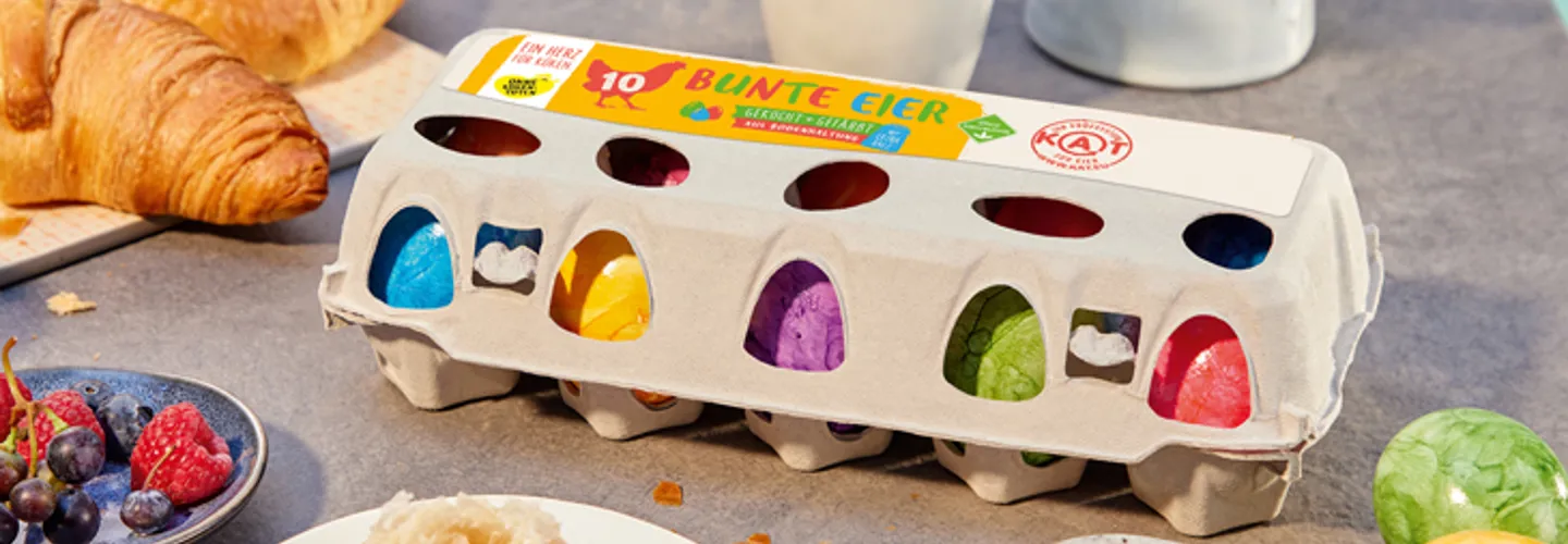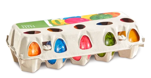 Plus View™ was developed to show coloured and hard-boiled eggs – an egg specialty found mainly in Germany, Austria and Switzerland – at their best. Previously, these eggs were packed in plastic egg cartons to attract consumers to the egg shelf with their bright colour.