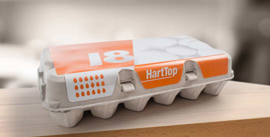 HartTop lets you either print directly or apply a full coverage label to achieve maximum branding and merchandising impact that differentiates high value specialty eggs from commodity.